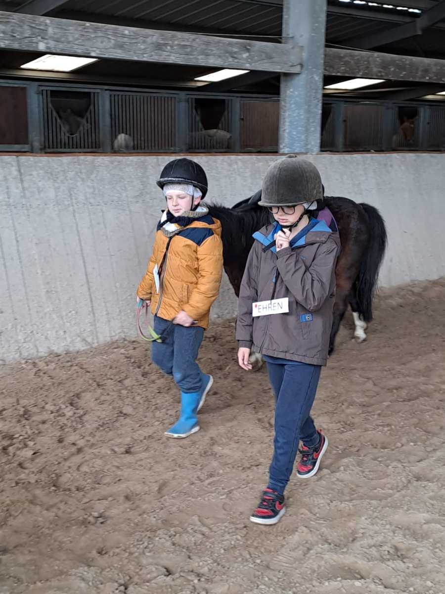 Après une pause repas bien méritée, nous avons participé à des jeux. Répartis en deux équipes, nous avons réalisé différents parcours à poney mais également en courant. Toute la classe s’est beaucoup amusée !!
