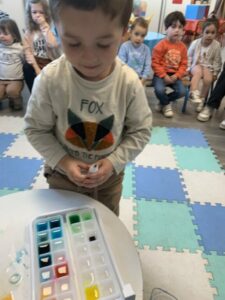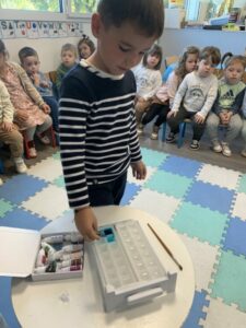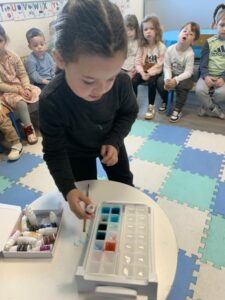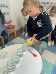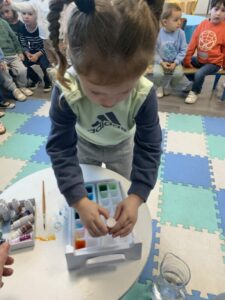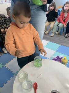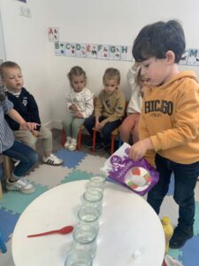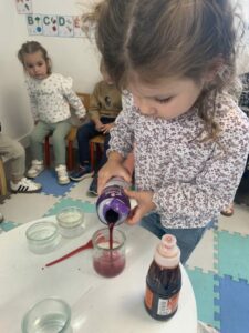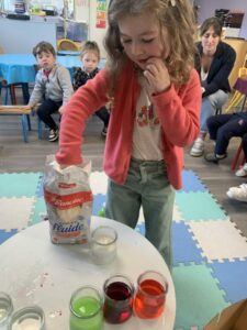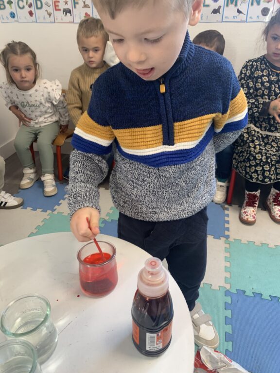 Depuis 2 semaines, nous travaillons sur l’eau en classe de PS-MS. Les enfants ont appris à faire des glaçons et voir dans quelles conditions les glaçons fondent. Nous avons réalisé des expériences pour tester les objets qui flottent et les objets qui coulent. Puis, les élèves ont aussi travailler sur les mélanges: l’occasion de voir avec quel liquide ou quelle matière l’eau peut se mélanger.