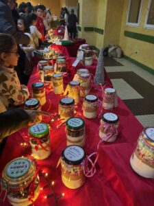temps de fabrication d’étoiles dans la médiathèque. Puis, ils ont rejoint tout le monde à l’église pour la fête des Lumières. Cela s’est poursuivi à la salle Charles DELAVERGNE par le marché ! Un grand merci à tous les parents bénévoles qui se sont investis ! Un grand merci aux parents de l’APEL !