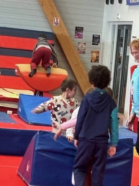 Nous avons continué nos séances de gymnastique à la salle de Moutiers les Mauxfaits. Nous avons commencé par des échauffements puis nous avons fait des ateliers sur l’équilibre.
