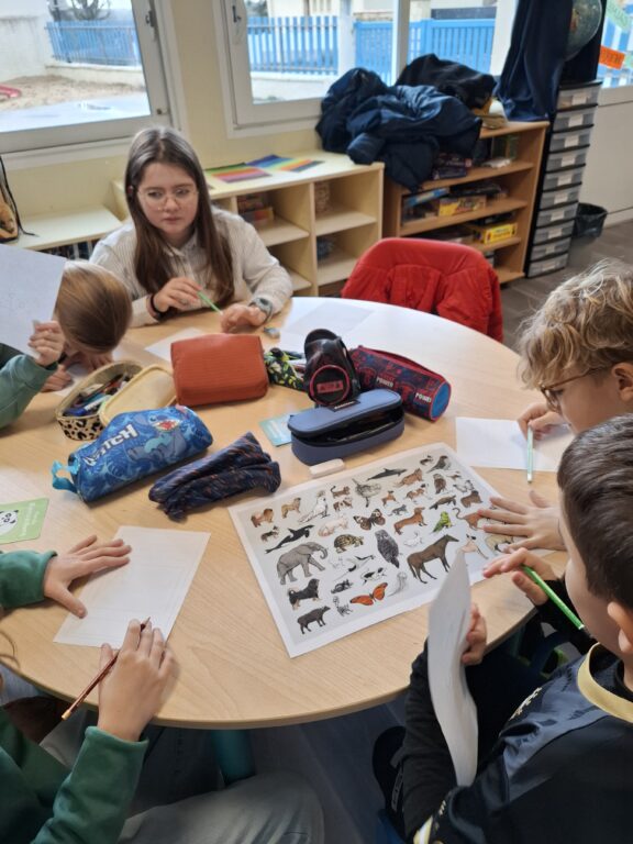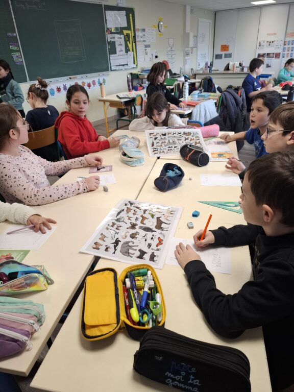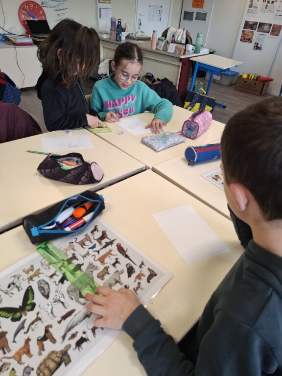 Enfin, ils ont pu commencer la 1ère étape du projet qui sera mis en œuvre au cours des séances suivantes : choisir un animal et un adjectif qui leur correspond afin de réaliser une page de bestiaire.