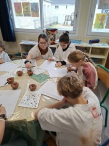 En lien avec le Parcours culture proposé par la Communauté de communes, les enfants ont réalisé la deuxième étape de fabrication de leur bestiaire.