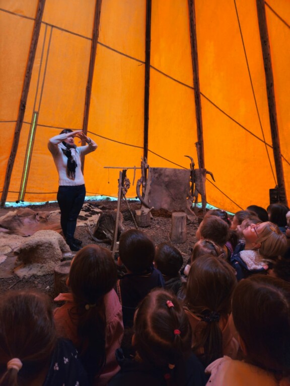 Vendredi 6 mars, nous sommes allés en bus au CAIRN pour poursuivre le travail commencé en classe pendant 3 séances sur les hommes préhistoriques.