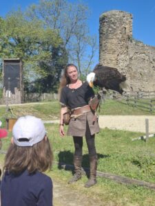 Enfin, nous avons pu profiter d’un magnifique spectacle de fauconnerie dans l’enceinte du château. Nous avons découvert différentes espèces de rapaces. Les enfants ont été impressionnés par ces oiseaux !