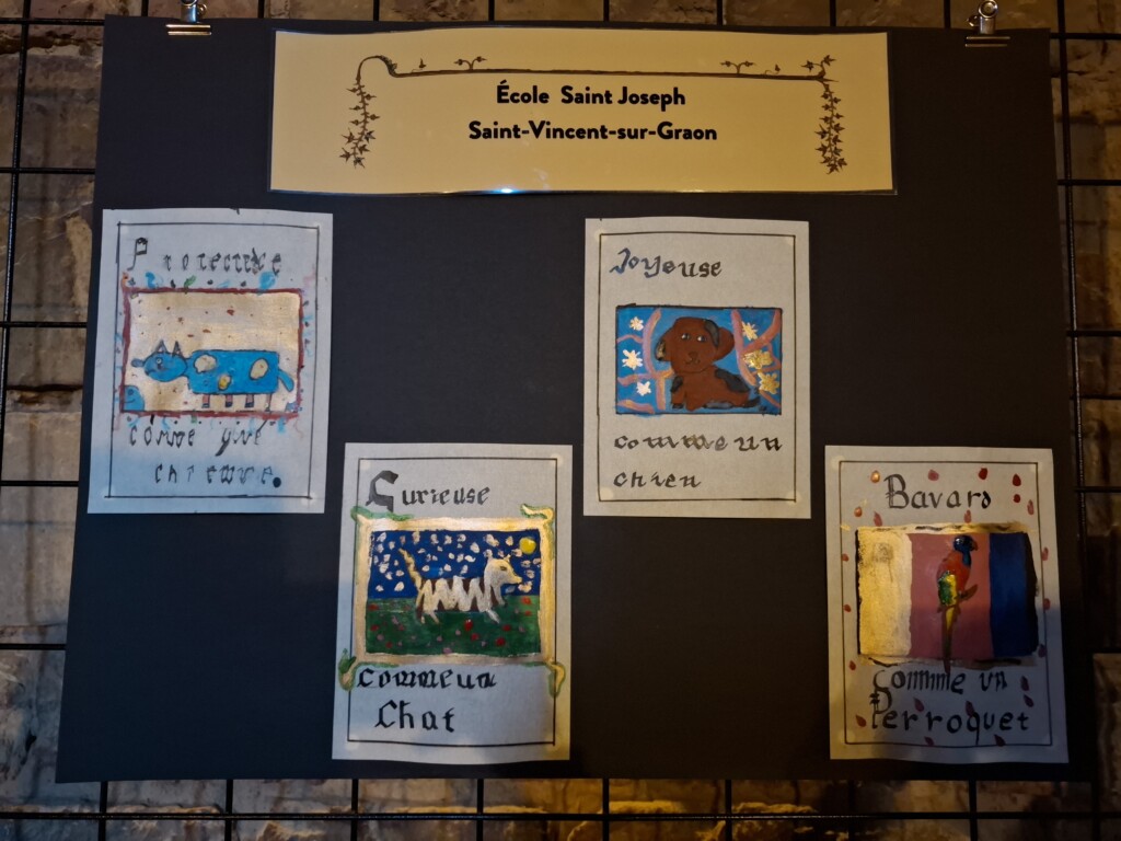 Au cours de cette visite, les enfants ont pu découvrir l’exposition consacrée aux pages du bestiaire qu’ils ont fabriquées en classe. Le résultat de leur travail sera exposé jusqu’à début mai.